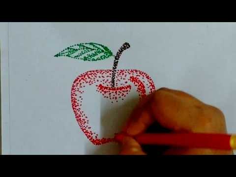 How to draw apple with sketch pen dots POINTILLISM