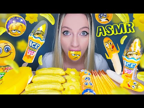 ASMR EATING YELLOW FOOD, ICE CREAM, LOLLIPOP, CANDY, 디저트 (MARSHMALLOW, POCKY, SOUR SPRAY) MUKBANG 먹방