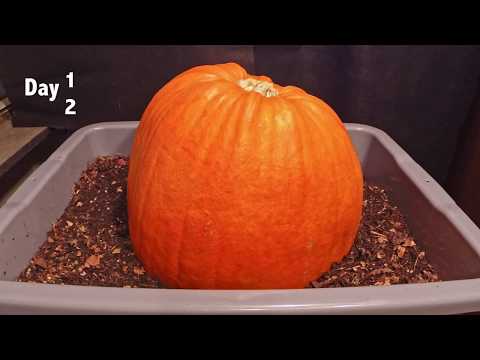The bins worm population was split; half of them remaining in the bin & the other half of the worms were loaded into the hollowed-out pumpkin. A bunch of shredded paper was loaded in after them to keep the worms up near the top of the pumpkin. The idea being that the pumpkin would be consumed not just from below but also from throughout its inside surface. It worked just as planned.. the worms made their way through the pumpkin quickly.