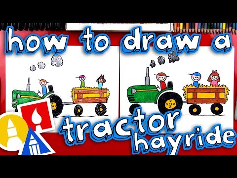 Its not quite Autumn, but we cant wait! We love hayrides! Today, Hadley and I are learning how to draw a tractor hayride. This is a fun lesson for younger artists. Encourage your artist to add a farm background and more kids in the trailer.