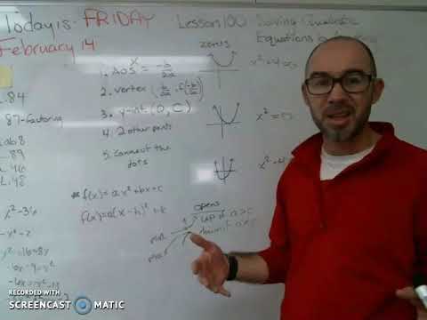 Algebra 1 Lesson 100a- Solving Quadratic Equations by Graphing