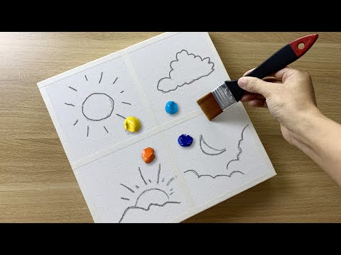 Daily challenge #88 / 4 Clouds Collage Acrylic Painting / Day and Night Painting