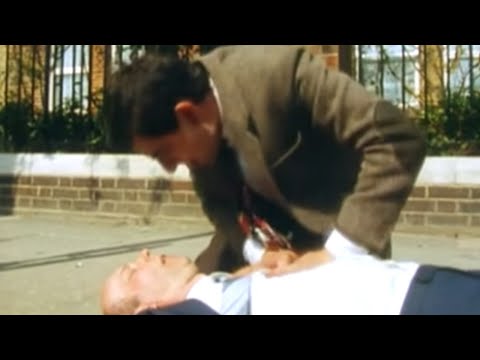 Mr Bean is first on scene when a man has a heart attack at the bus stop. He manages to revive him with a set of jump leads. From Mr Bean Rides Again.