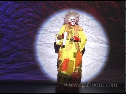 Funny clowns. Theater of Physical comedy Aga-boom. Great family show for all ages. Los Angeles 2003. "Do not touch" button! www.agaboom.com Iryna Ivanytska and Pill Briggs.
