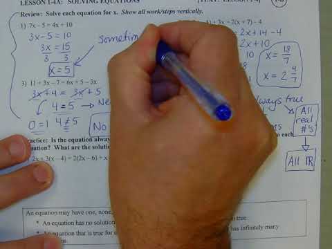 Lesson 1B (Solving Equations) and start of Lesson 1C (Literal Equations)