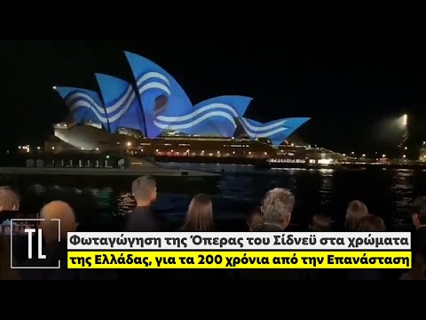 Φωταγώγηση της Όπερας του Σίδνεϋ στα χρώματα της Ελλάδας, για τα 200 χρόνια από την Επανάσταση