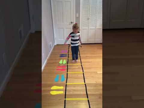 Gross motor activities preschooler pediatric physical therapy telehealth (jumping ladder foot print)