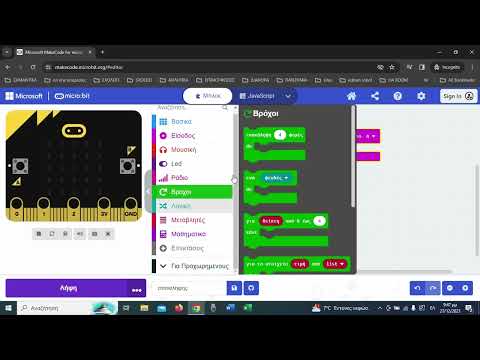 Περιγράφονται οι εντολές επανάληψης μέσα από δύο παραδείγματα. Στο ένα παράδειγμα με το πάτημα του πλήκτρου Α εμφανίζεται στο microbit 4 φορές η θερμοκρασία και στο δεύτερο παράδειγμα αναβοσβήσει μία καρδιά που σχεδιάσαμε 6 φορές.