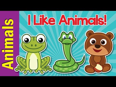 Learn about 12 different animals with our `I Like Animals song. Well sing about cows, cats, birds, bats, rhinos, ducks, snakes, dogs, bears, frogs, seals and owls! Which animal is your favorite?