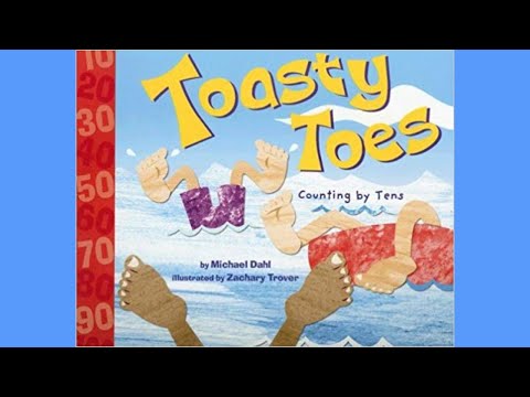 "Toasty Toes: Counting by Tens" is written by Michael Dahl and illustrated by Zachary Trover. This lovely book was published in 2006 by Picture Window Books. It is no longer in print, however I found this copy to share with young learners. It a fun book that can help children learn skip counting by tens, by counting toes by tens.